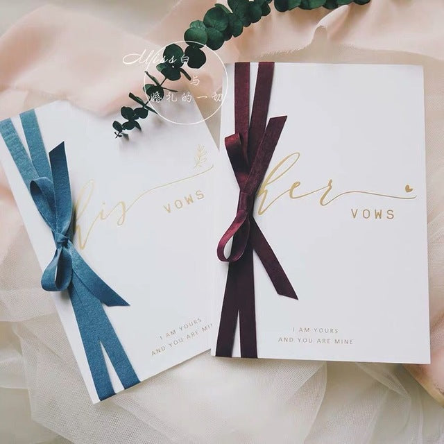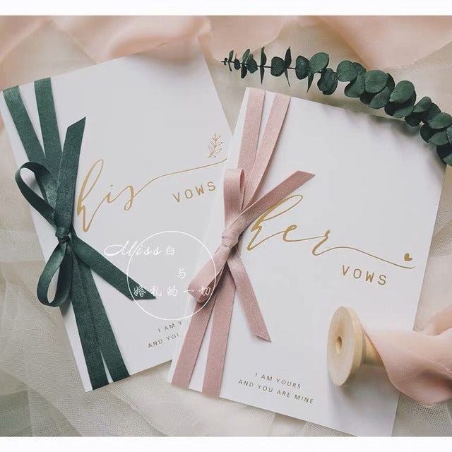 This set of his and her vow cards are simple and sweet. You will receive one of each for the bride and the groom :)