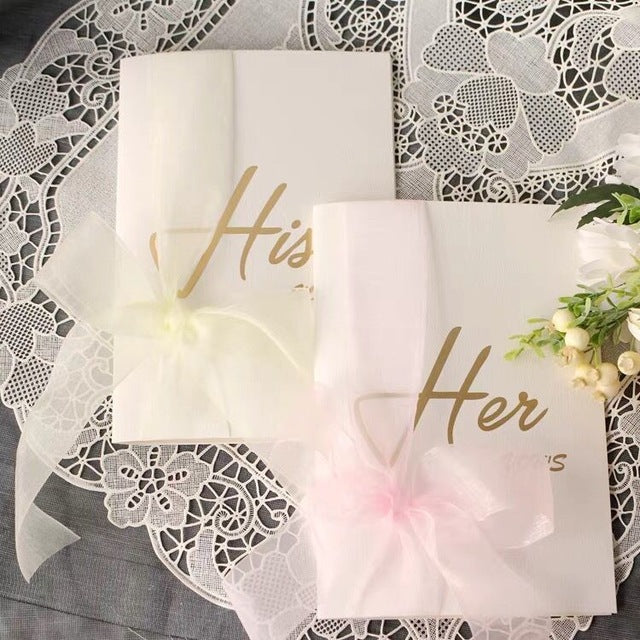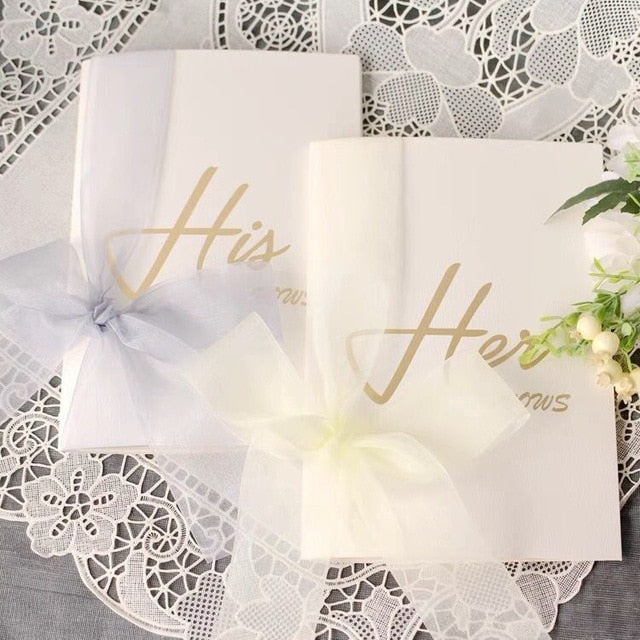 A prettier way to bring your vows to the altar. You will receive one of each for the bride and the groom. Write your love in the cards :)