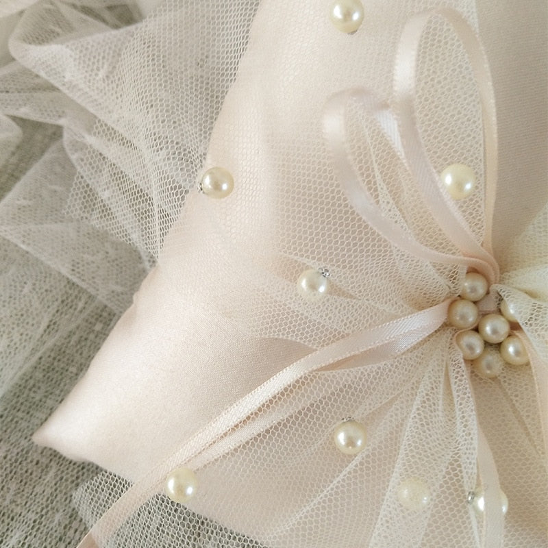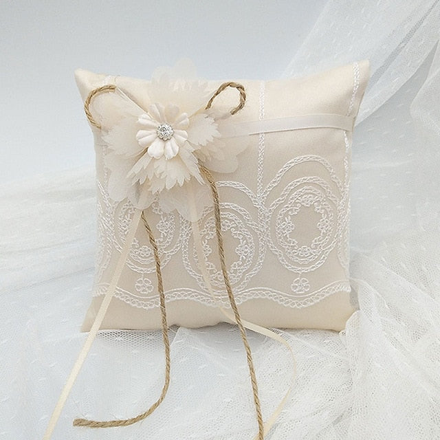 Lace Ribbon Wedding Ring Pillow (Champagne, 15x15cm)